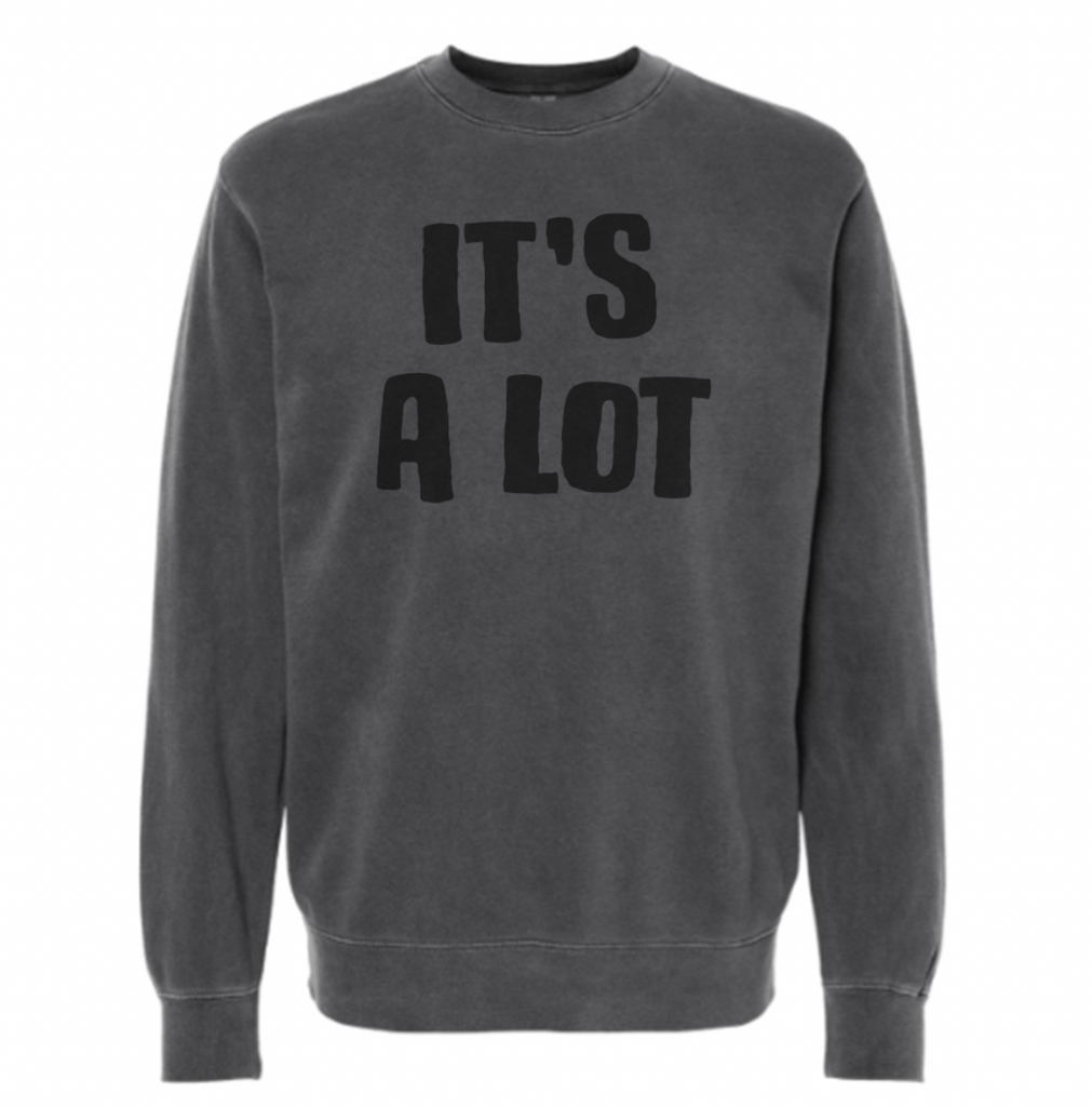 Wrap yourself in the soft, lived-in comfort of this premium crewneck sweatshirt, designed to celebrate Beth Lapides and her one-woman show It’s A Lot. Perfect for performers, comedy lovers, and anyone who appreciates a good truth beautifully told, this Pepper-colored sweatshirt features the show’s signature logo printed in crisp black ink.