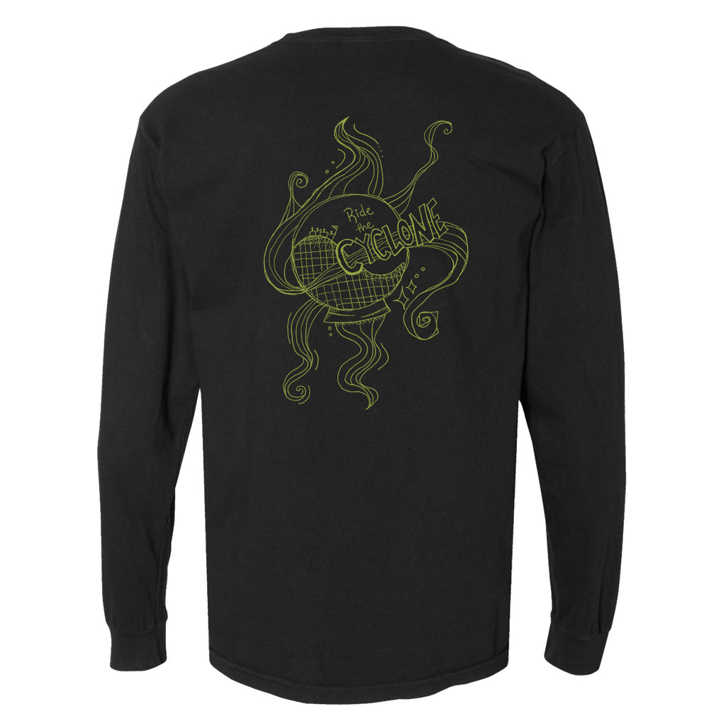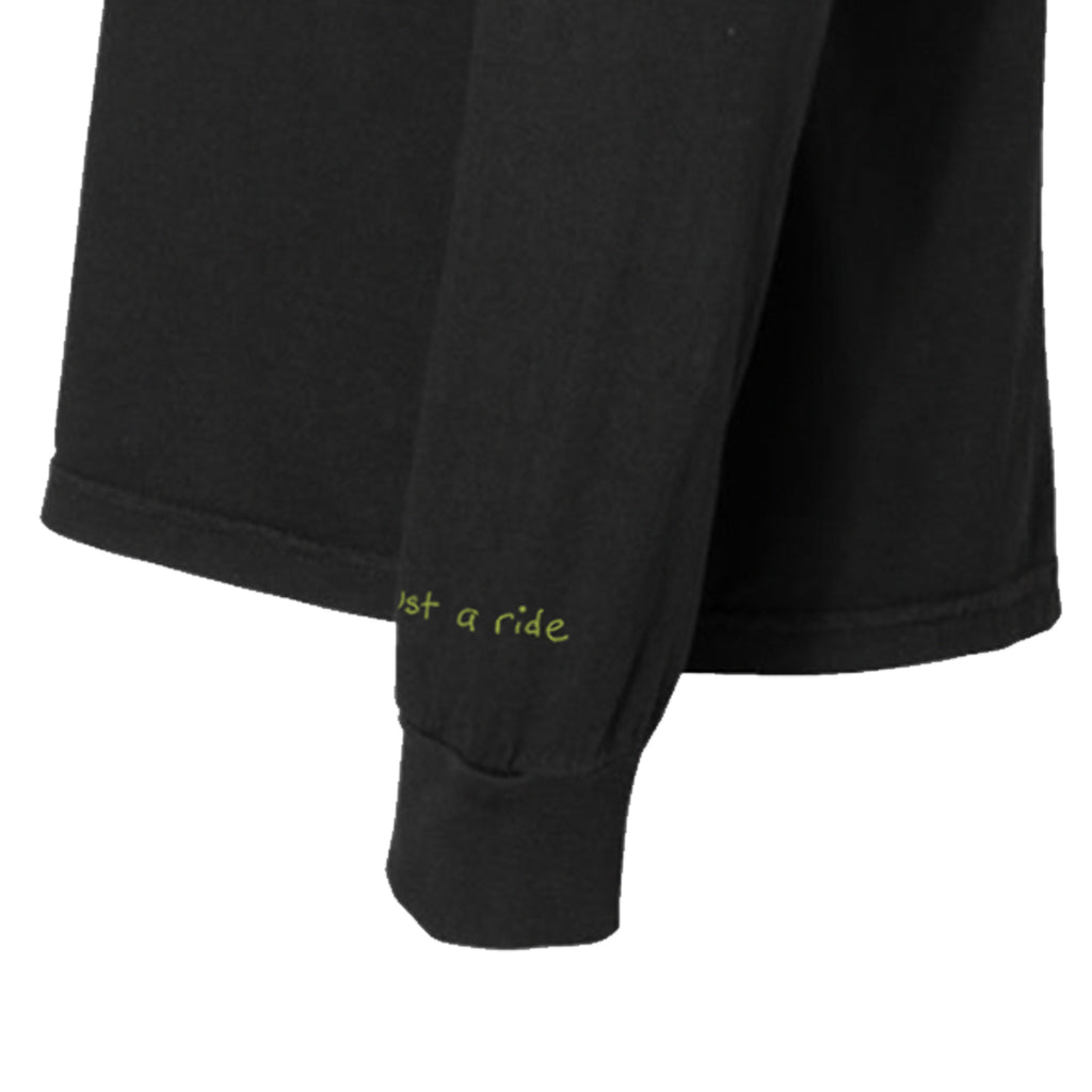 This heavyweight crewneck long sleeve shirt pairs cozy softness with lasting quality! Perfect for rehearsals, tech week, strike, or late-night Cyclone run-throughs. The avocado artwork adds a playful nod to the cast and crew community, celebrating everyone who keeps the ride running. Has the words "it's just a ride" printed on the left sleeve wrist.