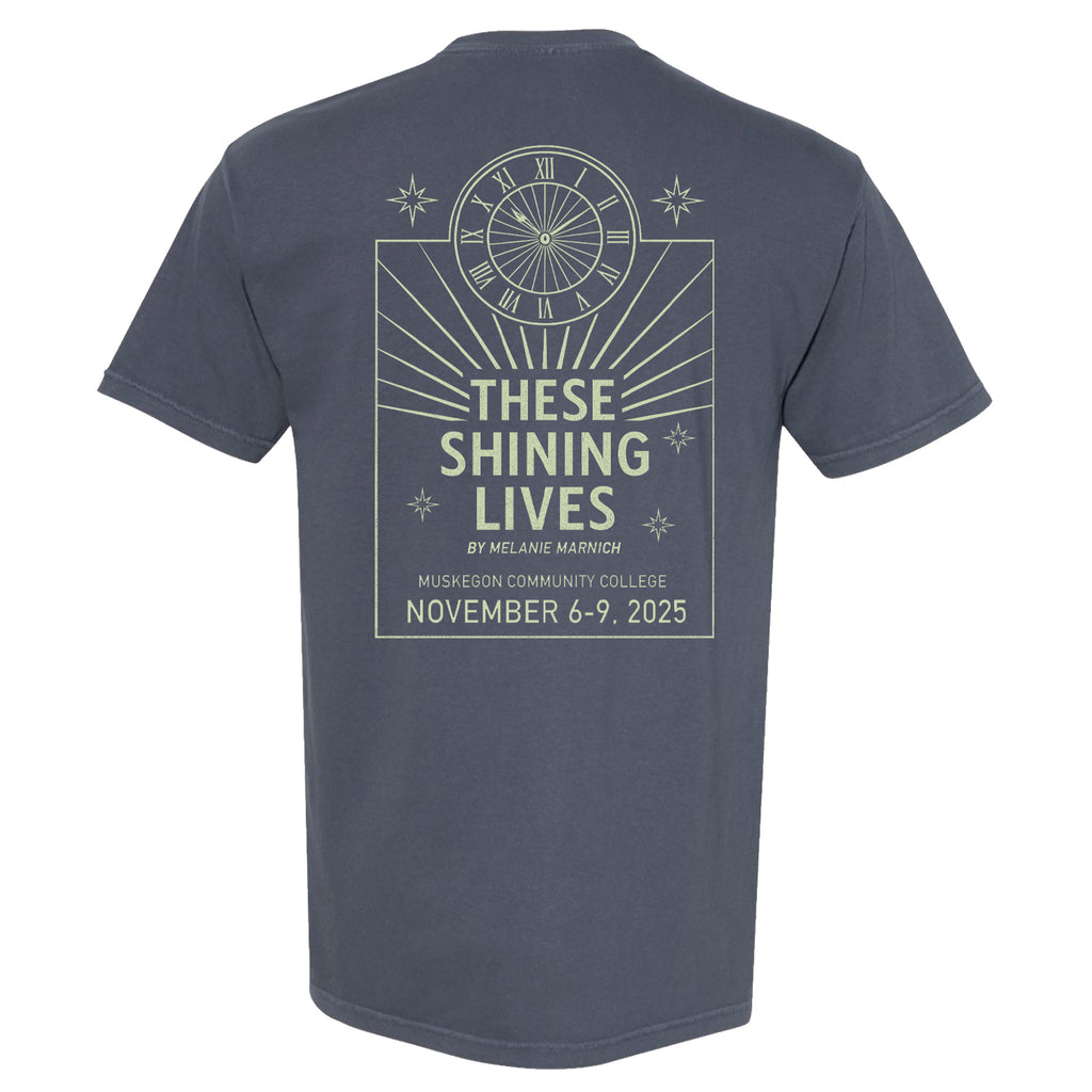 This shirt combines vintage softness with durable quality, perfect for rehearsals, cast hangouts, or layering under a flannel. The design honors the story of These Shining Lives, a tribute to courage, unity, and light that continues to shine through every cast and crew member who brought it to life.